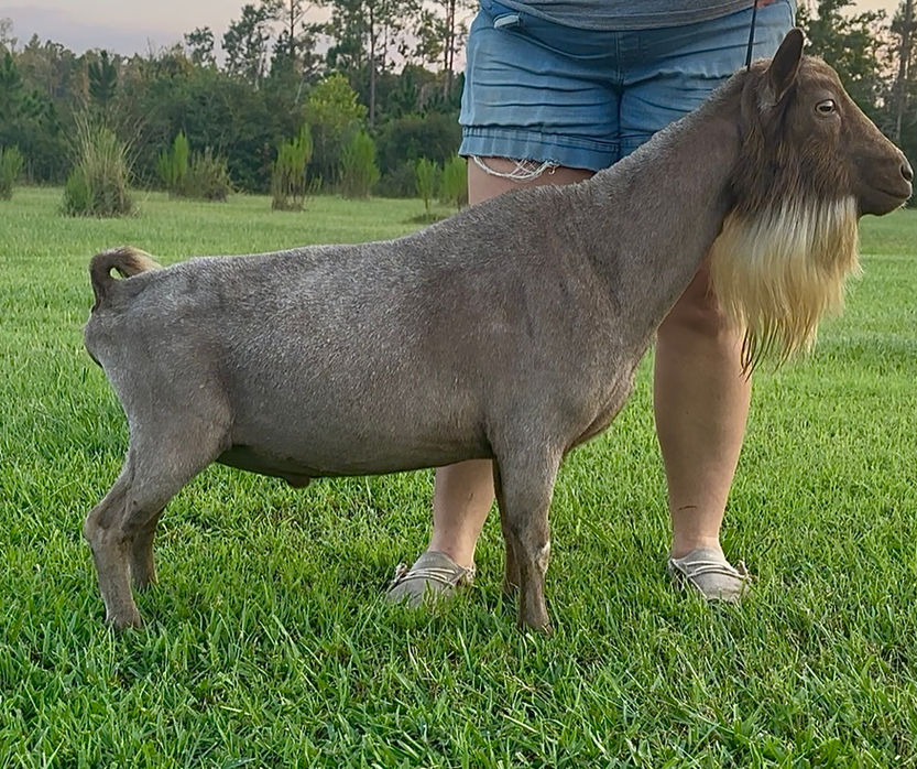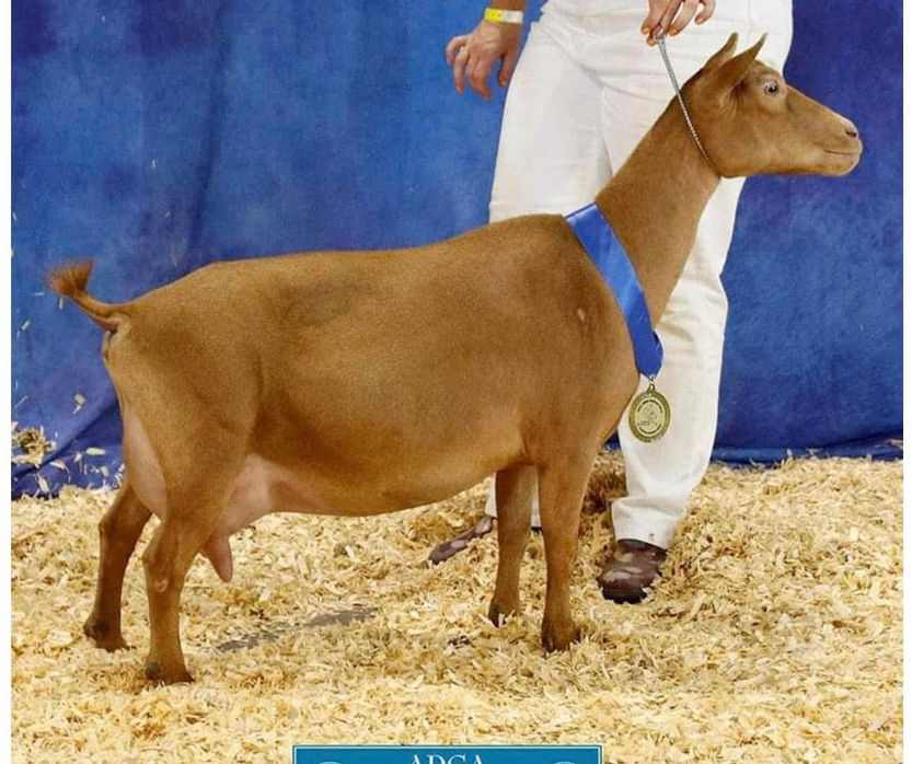 Sire’s Sire: Old Mountain Farm InLikeQuinn *B (SG Old Mountain Farm Cernunnos ++ *B VEE 90 Elite Buck x SG AGS Whitbred Easy Street 2*M VEEV 88)